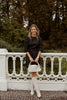 Dit korte zwarte jurkje is prachtig bewerkt en straalt pure elegantie uit. De tijdloze kleur in combinatie met de verfijnde details maakt het een echte eyecatcher. Ideaal voor een feestelijke avond of speciale gelegenheid.