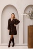 Een kort bruin jurkje bezaaid met sprankelende pailletten voor een feestelijke en opvallende uitstraling. Het glanzende oppervlak vangt het licht bij elke beweging. Ideaal voor een avondje uit of een speciale gelegenheid.