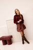 Een trendy bordeaux leatherlook ballonrokje met een speelse vorm en een stijlvolle, moderne uitstraling.