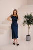 Een lange donkerblauwe satijnen jurk straalt luxe en elegantie uit. De glanzende satijnen stof valt soepel en creëert een verfijnd, vloeiend silhouet. Dankzij het tijdloze ontwerp is de jurk perfect voor formele gelegenheden en speciale avonden.