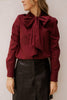 Bordeaux blouse met strikdetail voor een elegante en stijlvolle uitstraling. De rijke kleur en zachte stof geven een luxe gevoel. Perfect voor zowel zakelijke als feestelijke gelegenheden.