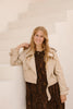 Dit korte beige jasje in lerenlook heeft een stijlvolle en moderne uitstraling. Het zachte materiaal voelt comfortabel aan en sluit mooi aan. Ideaal om elke outfit een chique en trendy touch te geven.