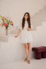 Een kort wit jurkje met driekwartsmouwen en een ceintuur in de taille. Het jurkje heeft een frisse, vrouwelijke uitstraling en laat zich zowel casual als iets netter stylen.