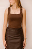 Dit bruine mouwloze topje heeft een moderne vierkante halslijn voor een elegante en eigentijdse look. De aansluitende pasvorm accentueert het silhouet op een subtiele manier. Perfect om solo te dragen of als basis onder een jasje of blazer.