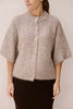 Deze harige beige top voelt heerlijk zacht aan en heeft een warme, luxe uitstraling. De gouden knopen geven het een elegant en stijlvol detail. Perfect om je outfit extra sfeer en klasse te geven.