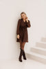 Een kort bruin jurkje is een stijlvol en veelzijdig kledingstuk in een warme, neutrale kleur. De korte lengte geeft een speelse en moderne uitstraling. Perfect voor zowel casual dagen als chique avondlooks.