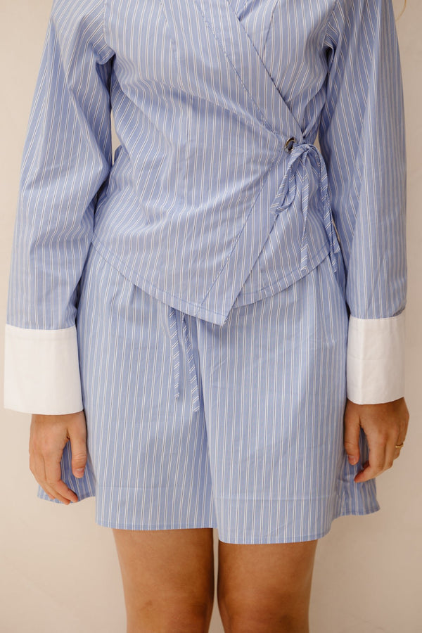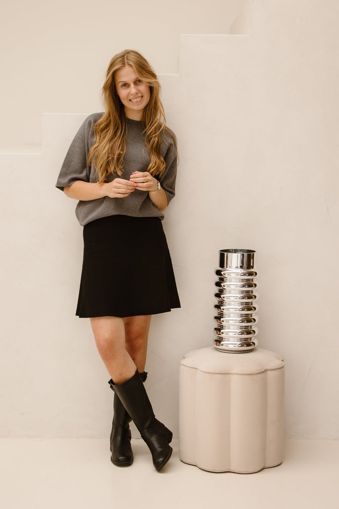 Objlisa mw short skirt noos medium grey melange humus pinstripe