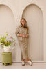 Een elegante leren rok in een zachte beige kleur met een tijdloze uitstraling. Het soepele materiaal biedt comfort en een flatterende pasvorm. Perfect te combineren met een bijpassende blouse voor een stijlvolle, complete outfit.