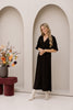 Deze elegante zwarte jurk is lang van model en valt soepel langs het lichaam. De jurk heeft korte mouwen en een flatterende pasvorm die geschikt is voor zowel formele als informele gelegenheden. Dankzij de tijdloze zwarte kleur en het eenvoudige ontwerp is deze jurk makkelijk te combineren met verschillende accessoires en schoenen, waardoor ze een veelzijdige toevoeging aan elke garderobe is.