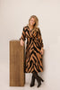 Deze lange zwarte jurk met bruine bewerking heeft een warme en stijlvolle uitstraling. De subtiele details geven de jurk een unieke en verfijnde touch. Perfect voor zowel feestelijke als chique gelegenheden.