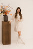 Het jurkje is 97 centimeter lang. Het model draagt maat S/M. Het model is 175 centimeter lang.