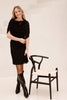 Das Kleid ist 98 Zentimeter lang. Das Model trägt Größe 36. Das Model ist 170 Zentimeter groß.
