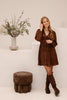 Ein elegantes, braunes Kleid aus weichem, angenehmem Stoff, das sich mühelos sowohl leger als auch elegant stylen lässt. Sein zeitloses Design passt perfekt zu verschiedensten Anlässen. Es lässt sich sowohl mit Sneakers als auch mit High Heels vielseitig kombinieren.