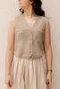 Een taupekleurig gilet straalt tijdloze elegantie en veelzijdigheid uit. De zachte, neutrale tint maakt het eenvoudig te combineren met zowel casual als formele outfits. Dankzij de verfijnde snit en subtiele details is het een stijlvol kledingstuk voor elke gelegenheid.