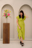 Gemaakt van hoogwaardige materialen, biedt de jurk zowel comfort als een luxe uitstraling. De frisse lime kleur voegt een speelse touch toe aan je garderobe, perfect voor de zomer of een feestelijke gelegenheid.