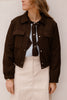 A rugged brown bomber jacket made of durable material that offers warmth and comfort. It has a classic fit. Ideal for adding a trendy, timeless touch to any outfit.