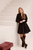 This short, dark blue dress stands out with its striking print and playful style. The flattering fit and comfortable fabric make it suitable for a variety of occasions. Perfect for a casual day out or a stylish evening look.