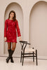 This short red dress stands out for its refined craftsmanship and feminine look. The rich details and elegant fit create a luxurious and festive look. Ideal for special occasions or a night out.