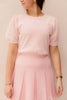 A pink top with embellished sleeves gives your outfit a feminine and sophisticated touch. The sleeve details add a playful and unique touch. Perfect for mixing and matching.