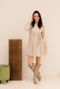 This short beige dress exudes soft and timeless elegance. Its neutral color makes it easy to style for both casual and chic looks. Thanks to its comfortable fit, you can wear it effortlessly all day long.