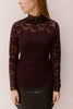 A burgundy lace top with elegant, refined details. The rich color and delicate lace create a luxurious, feminine look. Ideal for both formal occasions and a stylish evening look.