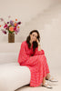 Deze lange jurk met een levendige roze-oranje print heeft een comfortabele V-hals met elastiek voor een perfecte pasvorm. De vloeiende stof en speelse kleuren maken het een frisse en vrouwelijke keuze. Ideaal voor zomerse dagen en feestelijke momenten.