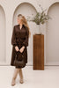 This long, dark brown satin dress exudes luxury and elegance. The shimmering, flowing fabric drapes beautifully over the body, creating a refined look. Perfect for formal occasions or a chic evening look.