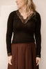 Deze elegante top heeft een vrouwelijke V-hals afgewerkt met verfijnd kant. De lichte stof valt soepel en zorgt voor een chique uitstraling. Perfect te combineren voor zowel een casual als feestelijke look.