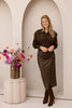 Deze PU-bruine rok combineert een stoere uitstraling met een zachte, leerachtige finish. De strakke pasvorm zorgt voor een moderne en stijlvolle look. Perfect om te dragen bij zowel casual als geklede outfits.
