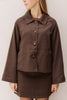 Een kort bruin jasje met stijlvolle ruiten op de mouwen voor een speels accent. Het jasje heeft een nette pasvorm en biedt comfort en warmte. Perfect om een casual outfit een modieuze touch te geven.