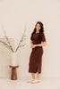 Een beige lange, strakkere jurk zorgt voor een tijdloze uitstraling. De neutrale kleur geeft een rustige en stijlvolle basis die gemakkelijk te combineren is met verschillende accessoires. Perfect voor zowel een chique avond als een verfijnde dagelijkse look.