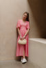 Deze prachtige maxi jurk is perfect voor elke gelegenheid. De opvallende roze print geeft de jurk een speelse en zomerse uitstraling. De jurk heeft een split aan de voorkant, wat zorgt voor een elegante touch. Draag de jurk naar een feestje of naar het strand, de mogelijkheden zijn eindeloos. Bestel nu en voeg deze must-have toe aan je garderobe!