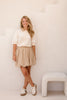 Dit korte zandkleurige ballonrokje heeft een speelse en luchtige pasvorm. Het zachte materiaal zorgt voor optimaal draagcomfort. Perfect voor een casual, stijlvolle look met een zomerse touch.
