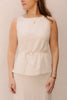 Een mouwloze linnen beige top met een luchtige en natuurlijke uitstraling. De ademende stof zorgt voor optimaal comfort, ideaal voor warme dagen. Een tijdloos item dat moeiteloos te combineren is in elke garderobe.