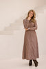 Deze lange jurk met bruine en witte strepen straalt een tijdloze, casual elegantie uit. De luchtige stof en rechte pasvorm maken haar perfect voor zowel warme dagen als gelaagde herfstlooks.