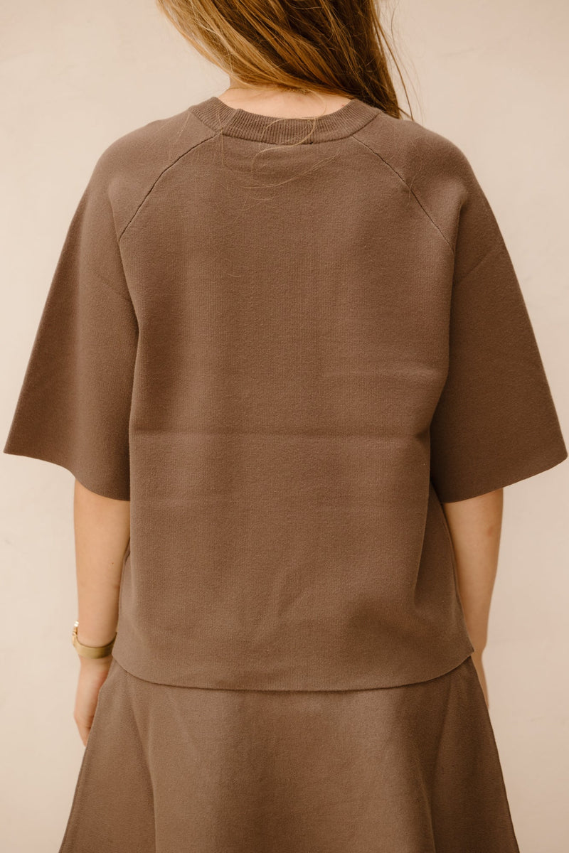 Deze gebreide bruine top straalt warmte en eenvoud uit. Het zachte materiaal en de fijne structuur zorgen voor een comfortabele en stijlvolle fit. Perfect te combineren!