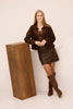 Dit korte bruine leren rokje straalt stoere elegantie uit en is perfect voor een trendy look. Makkelijk te combineren voor zowel een casual als geklede stijl.