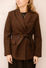 Deze bruine blazer komt met een bijpassend ceintuur voor een elegant en vrouwelijk silhouet. Een stijlvolle toevoeging aan elke outfit, zowel casual als gekleed.