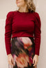 Een stijlvolle bordeauxrode top met speelse pofmouwen voor een vrouwelijke touch. Het zachte, comfortabele materiaal valt soepel en draagt prettig. Ideaal te combineren met een rok.