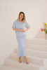 De lichtblauwe kleur geeft een frisse en moderne uitstraling, perfect voor zowel casual als formele gelegenheden. De rok valt soepel en accentueert de vrouwelijke vormen, waardoor je er altijd stijlvol uitziet.